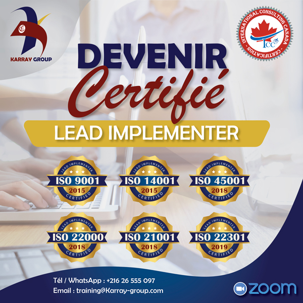 Je voudrais exprimer toute ma reconnaissance à KARRAY GROUP/IC CANADA pour cette belle formation en ligne sur : « ISO 9001 Version 2015 LEAD IMPLEMENTER ». Le contenu de la formation est soutenu et l'animation est très interactive avec des formateurs et la documentation disponibles.